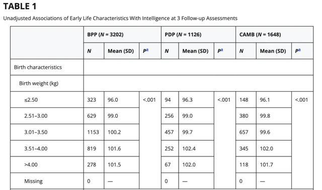 先说结论:出生体重,和将来智力发育确实有一定的关系。