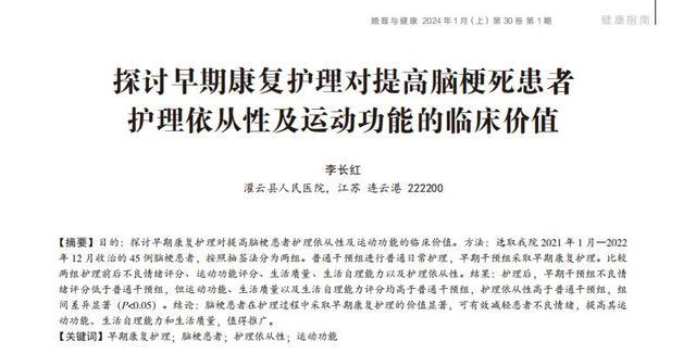 [1]李长红.探讨早期康复护理对提高脑梗死患者护理依从性及运动功能的临床价值,婚育与健康,2024-01-15